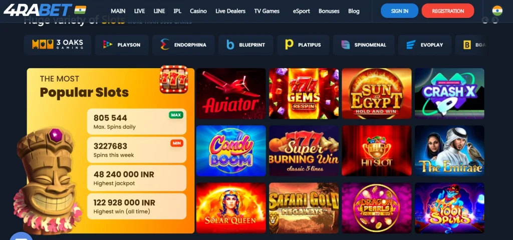 Slot machines are among the most popular games at 4RaBet casino India, and 4RaBet offers a wide variety of video slots with various themes, bonus features, and jackpots. From traditional fruit machines to modern video slots, you’ll find games that cater to all preferences.