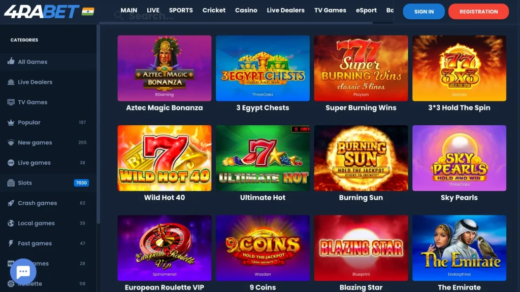 The 4rabet slots demo lets you play any supported 4rabet slot machine game with virtual credits — no deposit withdrawal slots needed. The 4rabet free slots demo uses identical RTP and mechanics as 4rabet slots real money. Test all slots from low to high volatility while you investigate their scatter and wild symbol patterns before you place your INR wager.